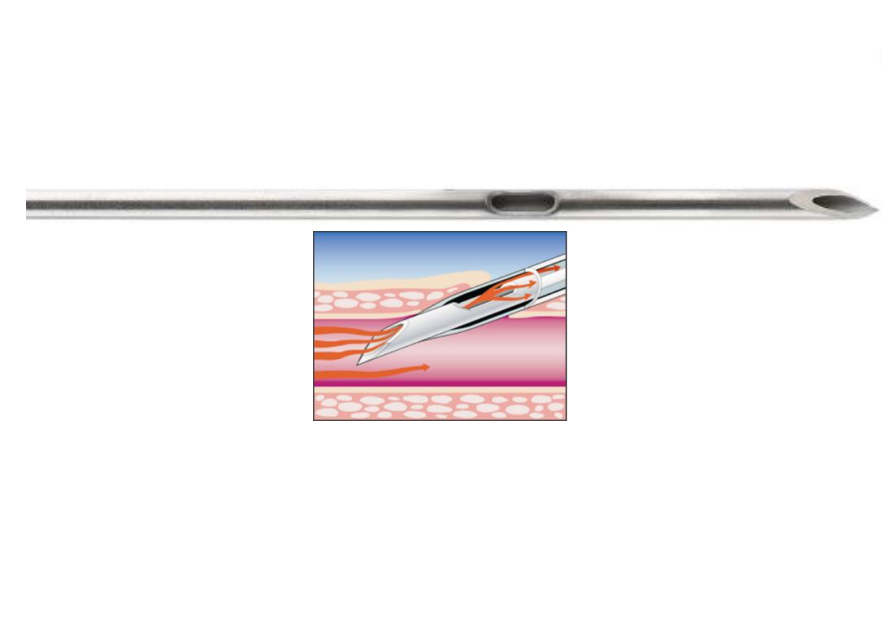 Ago dotato di fenestratura addizionale, BD Instaflash™, in prossimità della punta per l’immediata visualizzazione del reflusso e per aumentare il successo del posizionamento al primo tentativo anche in presenza di vene difficili.