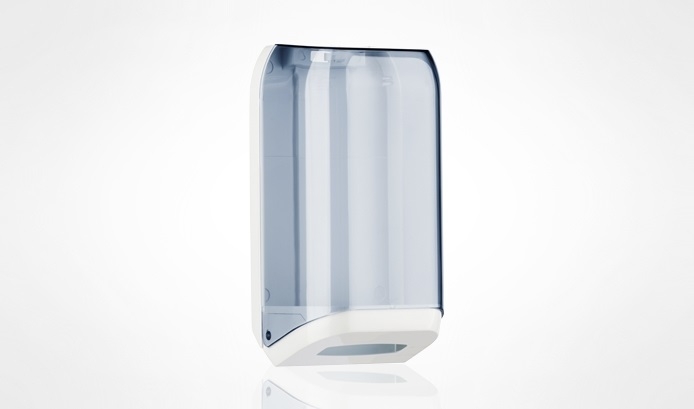 Dispenser carta igienica intercalata. Qualità ABS, bianco e trasparente. Chiusura con chiave. Dimensioni 15,8×13,3×30,7 h cm..