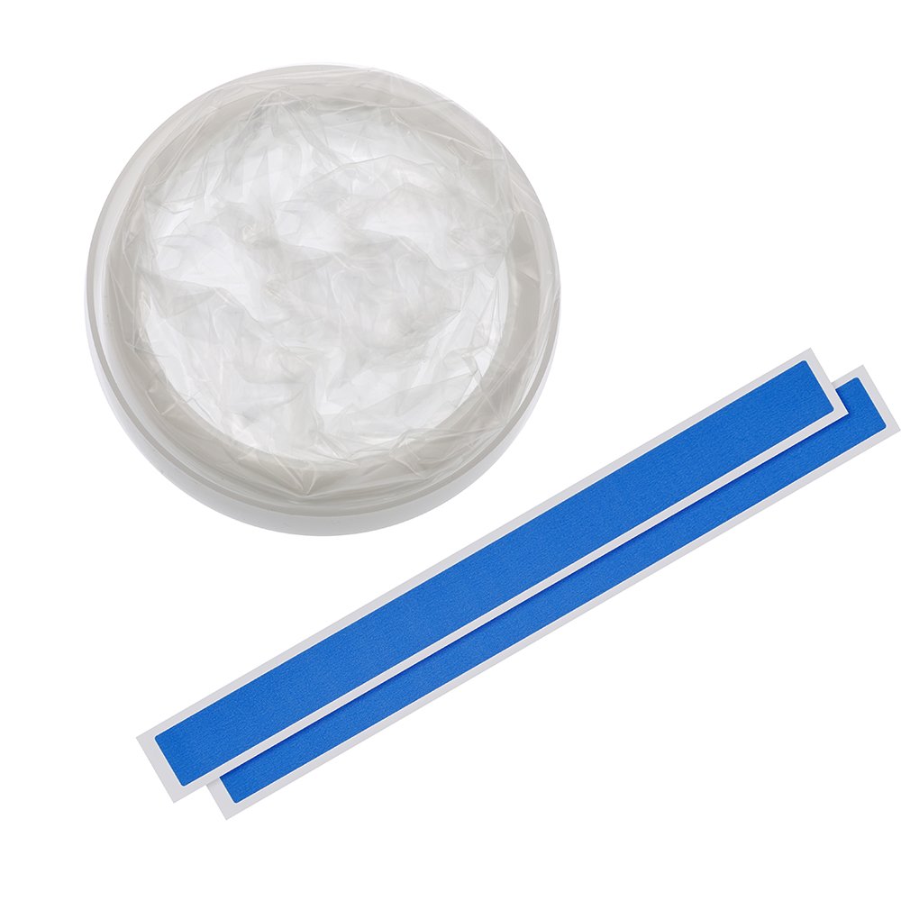 - I nastri con biadesivo permettono il fissaggio sicuro della copertura all’estremità prossimale del dispositivo da proteggere (ad esempio l’ottica laparoscopica)