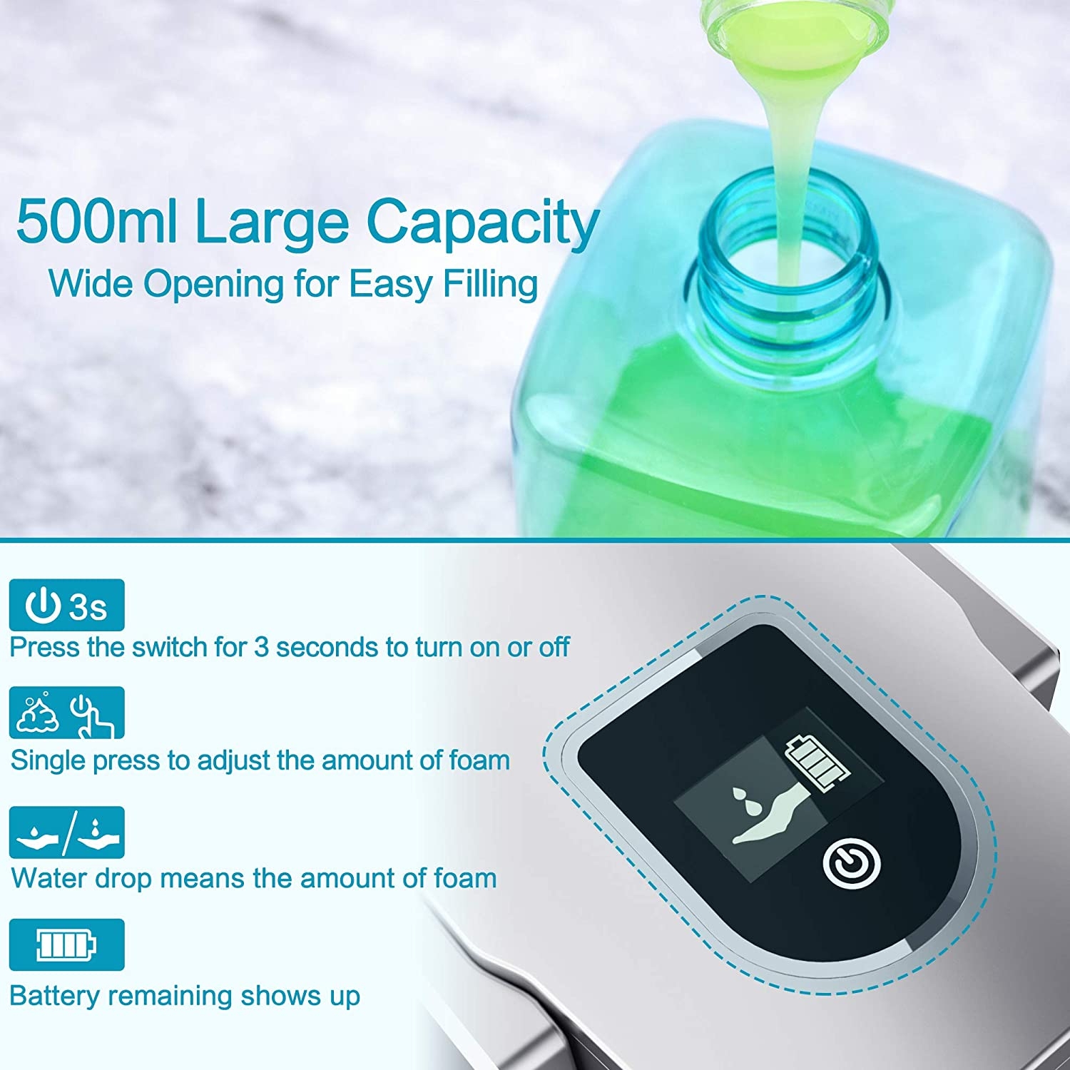 Ampia compatibilità: il dispenser di sapone senza contatto è compatibile con la maggior parte dei tipi di sapone liquido come disinfettante per le mani, disinfettante e lozioni per il corpo.