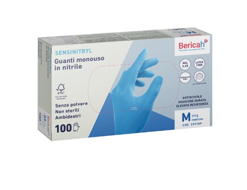 - Materiale: nitrile senza polvere, latex-free, ipoallergenico