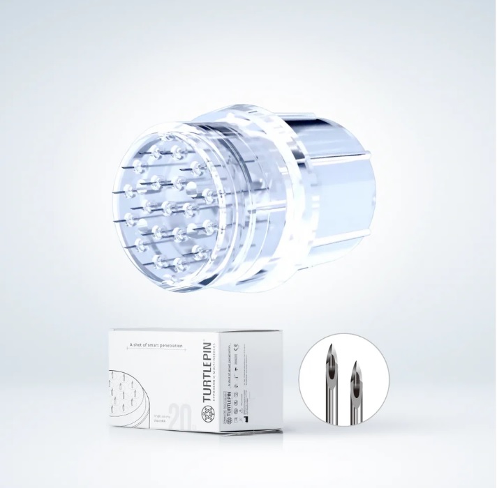 Il TURTLEPIN da 0,5 mm con 19 micro-aghi ultra sottili offre un microneedling preciso con penetrazione fino al derma superficiale. Questo dispositivo medico certificato CE è progettato per iniezioni superficiali, clinicamente testato per migliorare l’assorbimento con dolore e infiammazione minimi.