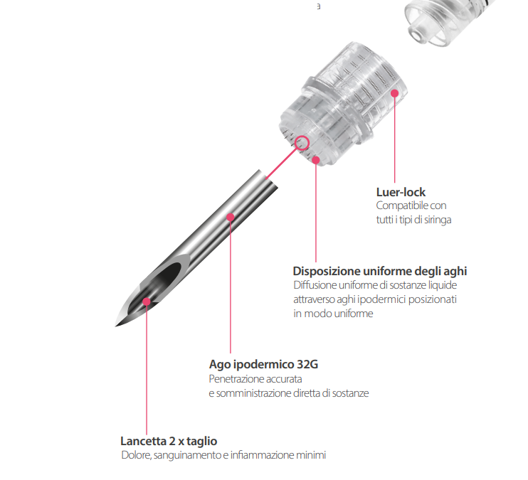 – Ago ipodermico 32G: Penetrazione accurata e somministrazione diretta di sostanze