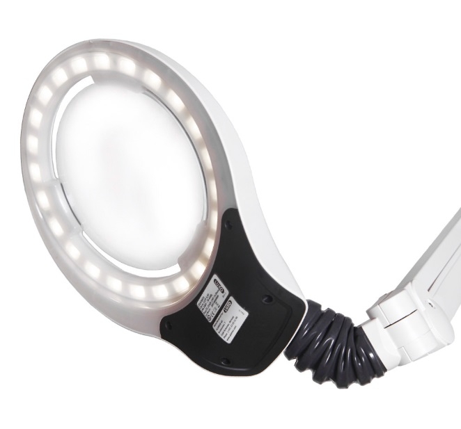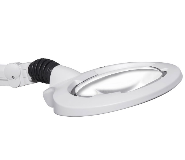 - Facilità di posizionamento. Grazie alla presenza del braccio articolato e della molla, il corpo lampada può essere regolato orizzontalmente, verticalmente e lateralmente consentendo una infinità di movimenti.