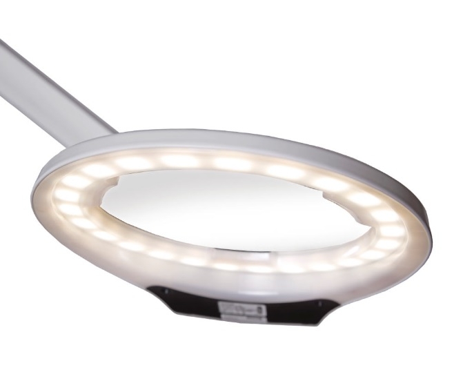 - Sorgente di luce a LED. I suoi LED si sviluppano circolarmente con un’ottima riproduzione del colore (CRI> 90) e permettono di illuminare il campo senza ombre.I moduli LED sono dimmerabili, 10-100%.