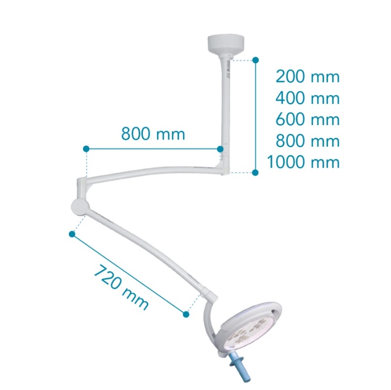 - Regolazione dell’intensità della luce: intensità della luce regolabile integrata nel manipolo e secondo comando sul corpo lampada.