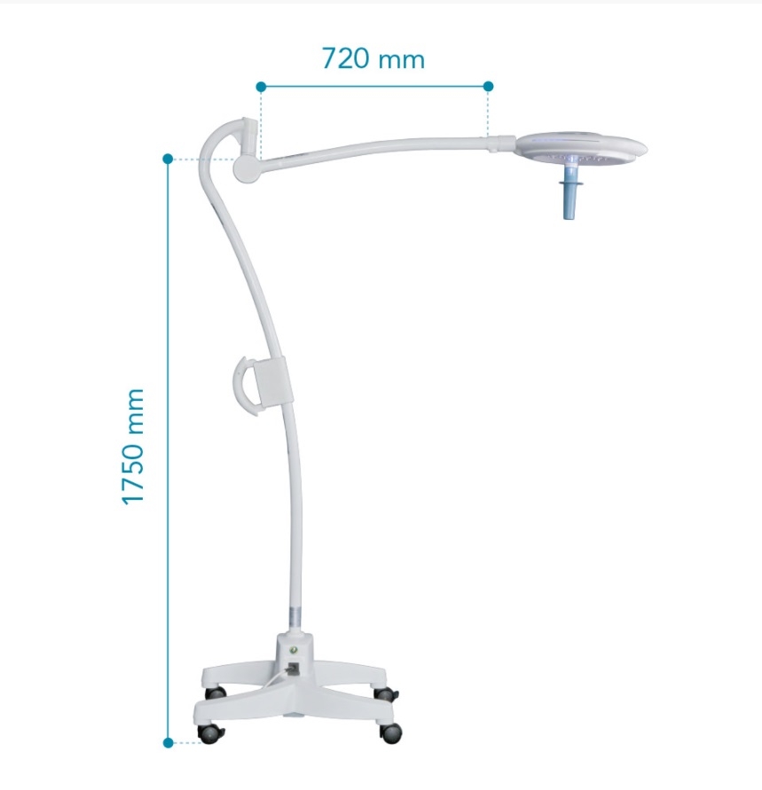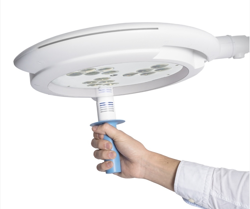 - Regolazione dell’intensità della luce: intensità della luce regolabile integrata nel manipolo e secondo comando sul corpo lampada.