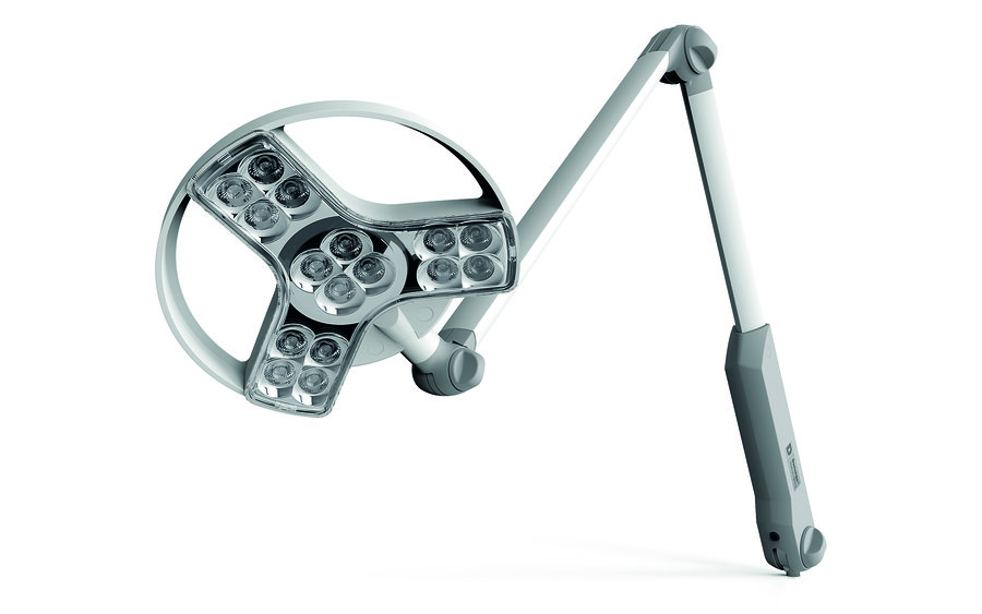Ottica a diamanti, quattro livelli di colore della luce, per un’ottimale discriminazione dei tessuti, testa rotante a 360°, campo di illuminazione ø 21 cm da 3500 K a 4500 K ed intensità della luce 60.000 lux a 50cm. Materiali trattati con antimicrobici Sanitized. Giunti bilanciati a molle per un facile posizionamento.