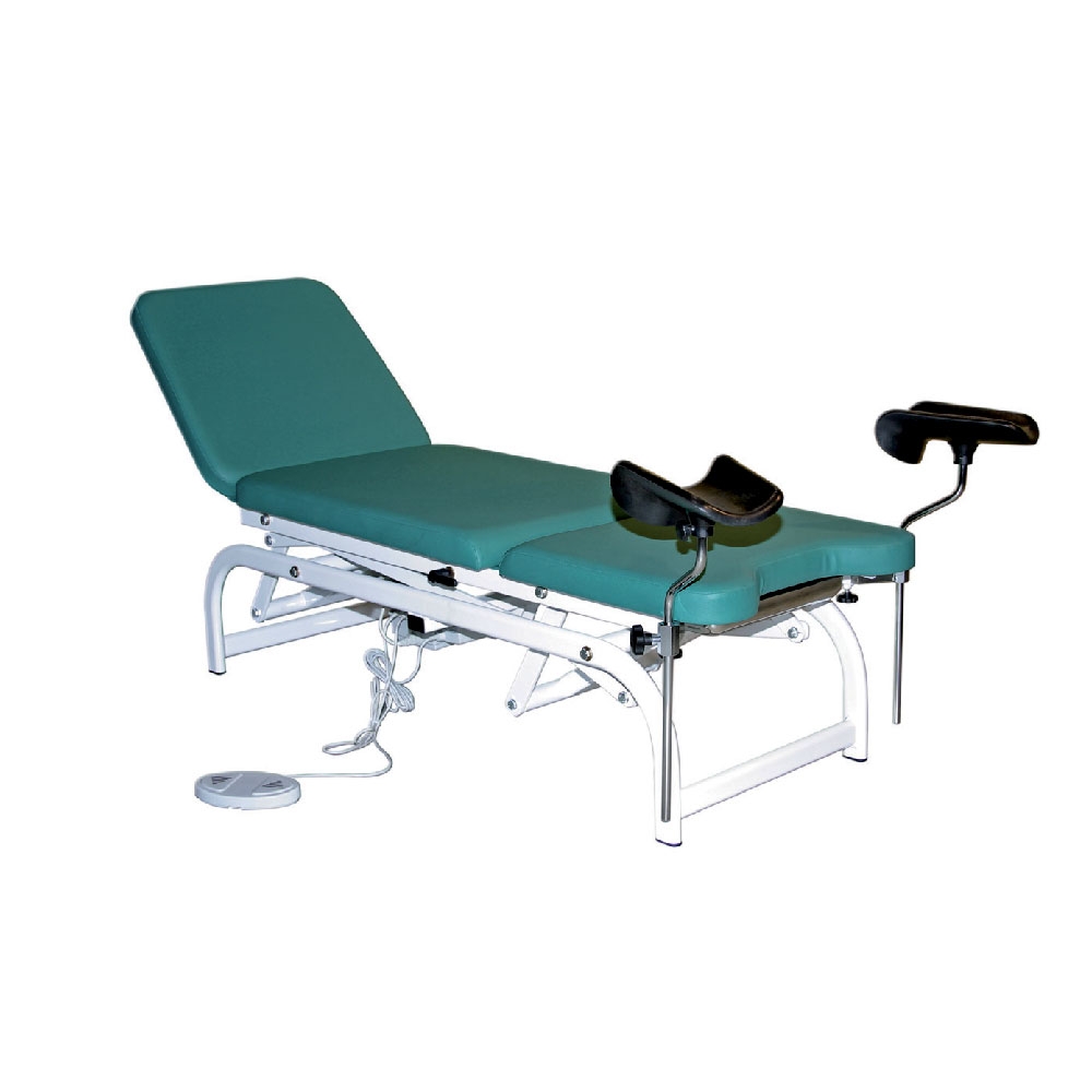 Struttura regolabile in altezza elettricamente per mezzo di attuatore (motore) lineare azionato da pedaliera. Verniciato con polvere epossidica di colore bianco. Si può definire polivalente poiché inclinando il cuscino centrale si può utilizzare la struttura come poltrona per visite specialistiche.