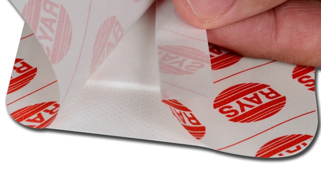 Morbido tessuto non tessuto traspirante spalmato con adesivo poliacrilato ipoallergenico, leggero e sottile, radiotrasparente, permeabile all’aria e al vapore acqueo;