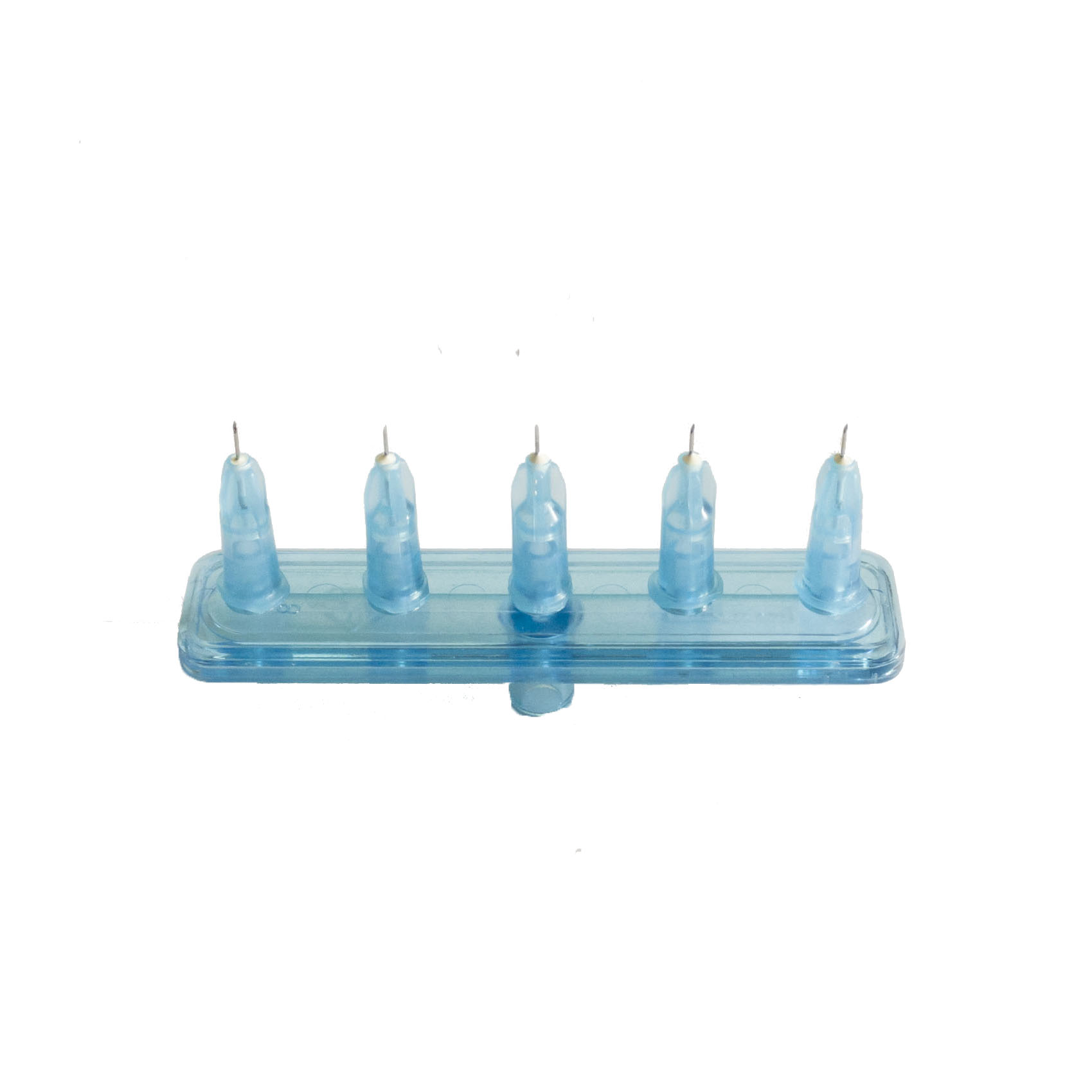 Piastre lineare per trattamenti multipli con 5 aghi. Disponibile con aghi da 27 G o 30 G, lunghezza aghi 4 mm. In confezione singola sterile.