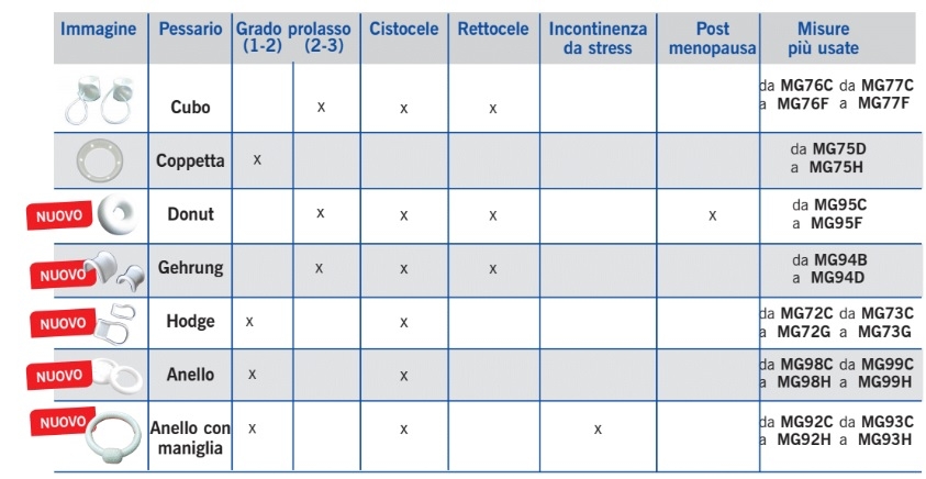 - pessario uterino cubico con fori di drenaggio (per permettere il transito delle secrezioni)