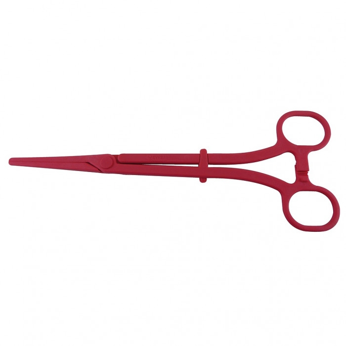 Pinza Evolution monouso lunghezza 25 cm sterile. Impugnatura ad anello, morso zigrinato.