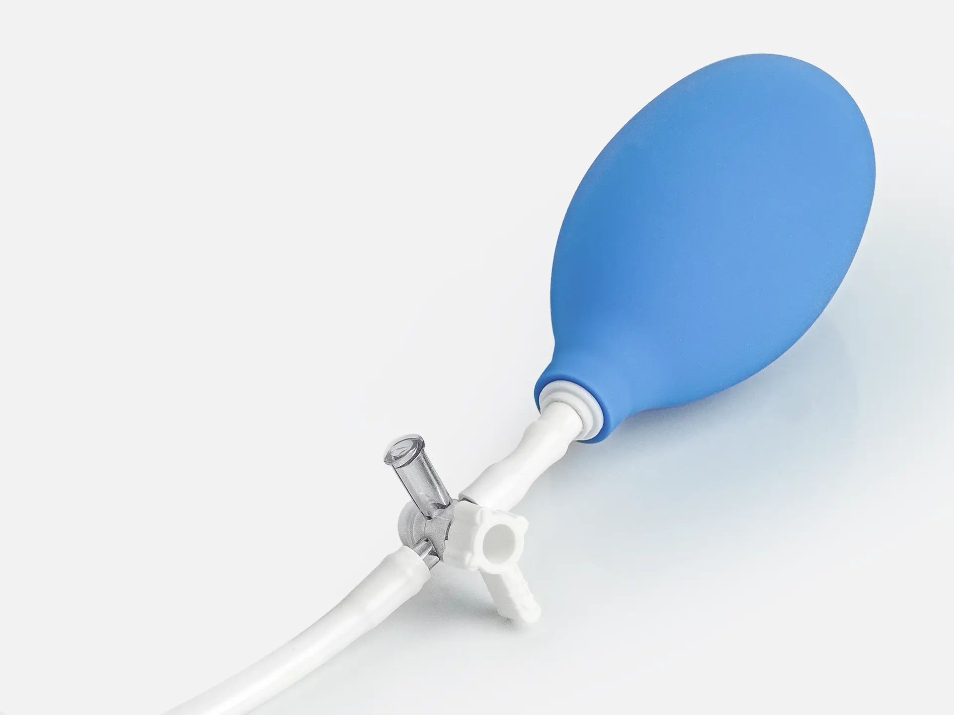 • Pompetta di gonfiaggio a mano, rubinetto a tre vie per rapido sgonfiaggio durante il cambio del fluido borsa