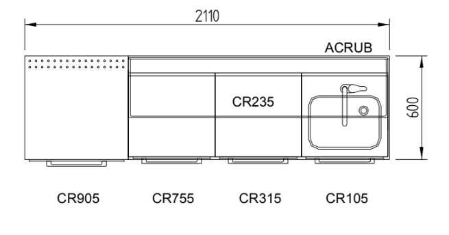 - 1 modulo con 4 cassetti:, nr.3 cassetti da mm 142 e nr.3 bacinelle, nr.1 cassetto da mm 214 e nr.1 bacinella.