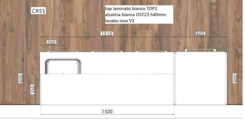 La grande modularità consente ampie possibilità di personalizzazioni. Il top è realizzato in laminato bianco con lavello in acciaio inox sottopiano. Miscelatore monocomando con leva clinica. Tutte le strutture sono in lamiera elettrozincata, verniciate con polveri epossidiche ed i cassetti scorrono su guide ammortizzate. I mobili vengono spediti direttamente dalla fabbrica, parzialmente assemblati per permettere un facile completamento. Colore standard bianco. Le maniglie possono essere cromate o satinate. La base può essere cieca o supportata da piedini. Il top ha uno spessore di 30 mm e l’alzatina ha una altezza di 10 mm.