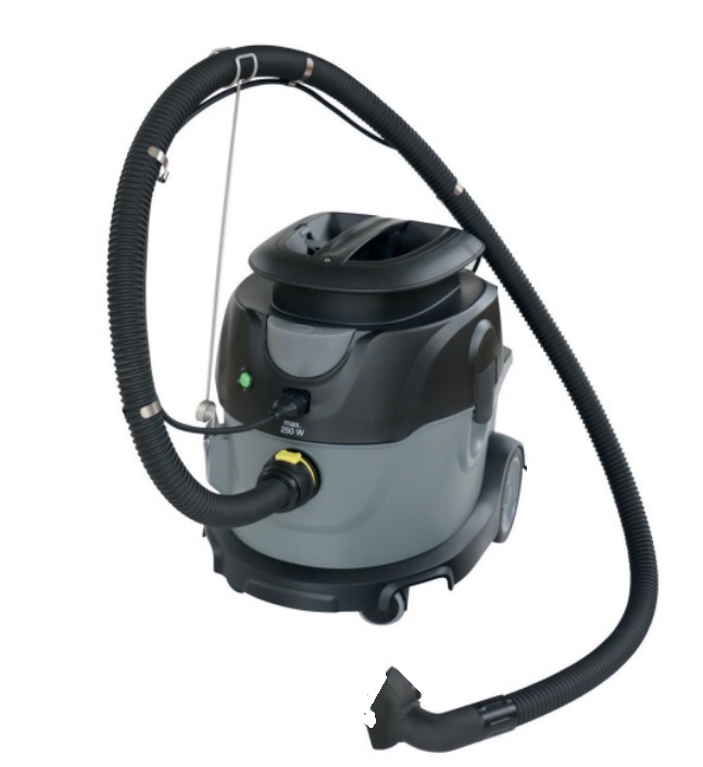 Aspiratore predisposto per sega gessi SM-228N, progettato per salvaguardare l’ambiente ed il personale dalle polveri normalmente presenti nell’area di lavoro. Aspiratore versatile e compatto dotato di speciale filtro per polveri fini di gesso e materiale sintetico. La potente turbina da 1600 W genera un flusso d’aria di 61 litri/sec. ed una depressione di 244 mbar. Lo speciale filtro blocca il 99,97% delle particelle di diametro superiore a 0,5 μm. Il sistema è dotato della cuffia di aspirazione progettata appositamente per adattarsi alle seghe HEBU. Il dispositivo di avvio ed arresto automatici è comandato direttamente dall’interruttore posto sulla sega. Alimentazione: 220-240 Volt 50/60Hz – Capacità aspiratore: 15 lt – Quantità d’aria apiratore: 61 l/s – Rumorosità aspiratore: 59 dB (A).