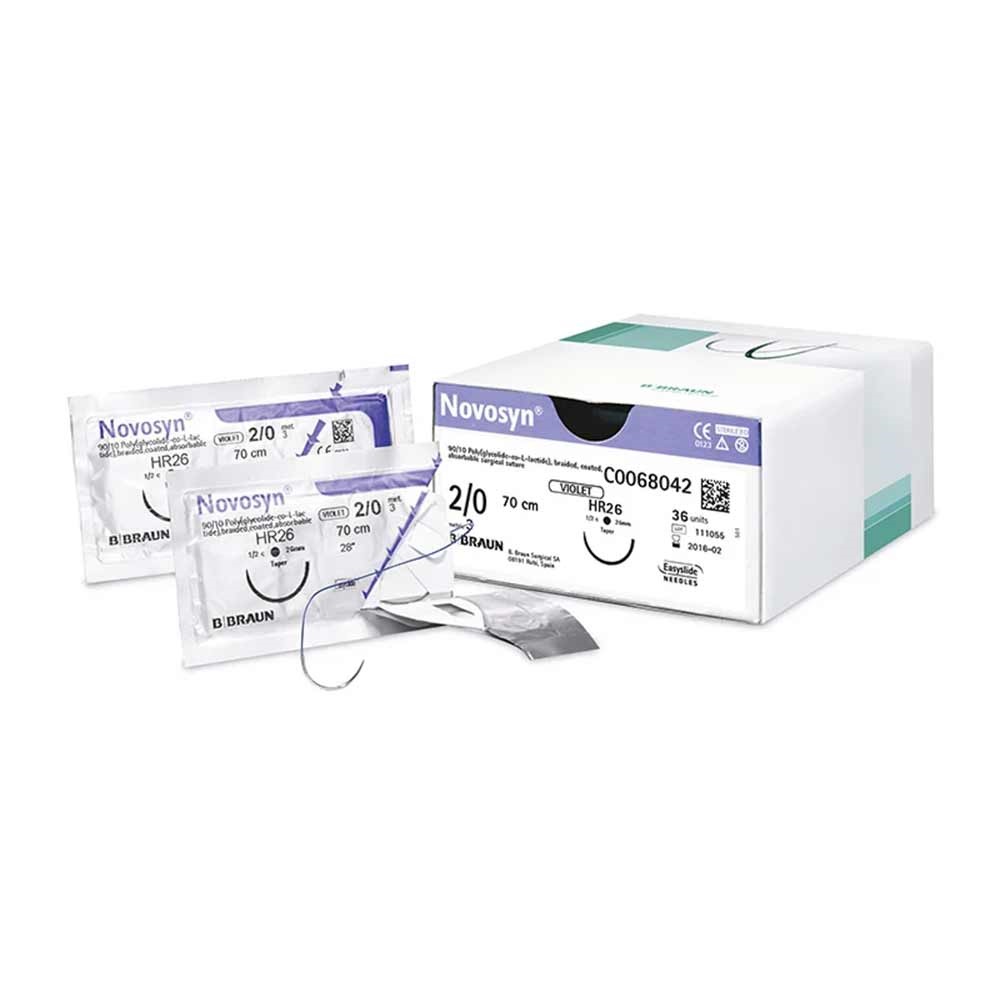 Novosyn® è una sutura sintetica assorbibile a medio termine, intrecciata e rivestita, costituita da acido glicolico e acido lattico 90/10 (polyglactin 910). Novosyn® si degrada per idrolisi e fornisce un assorbimento prevedibile e affidabile.