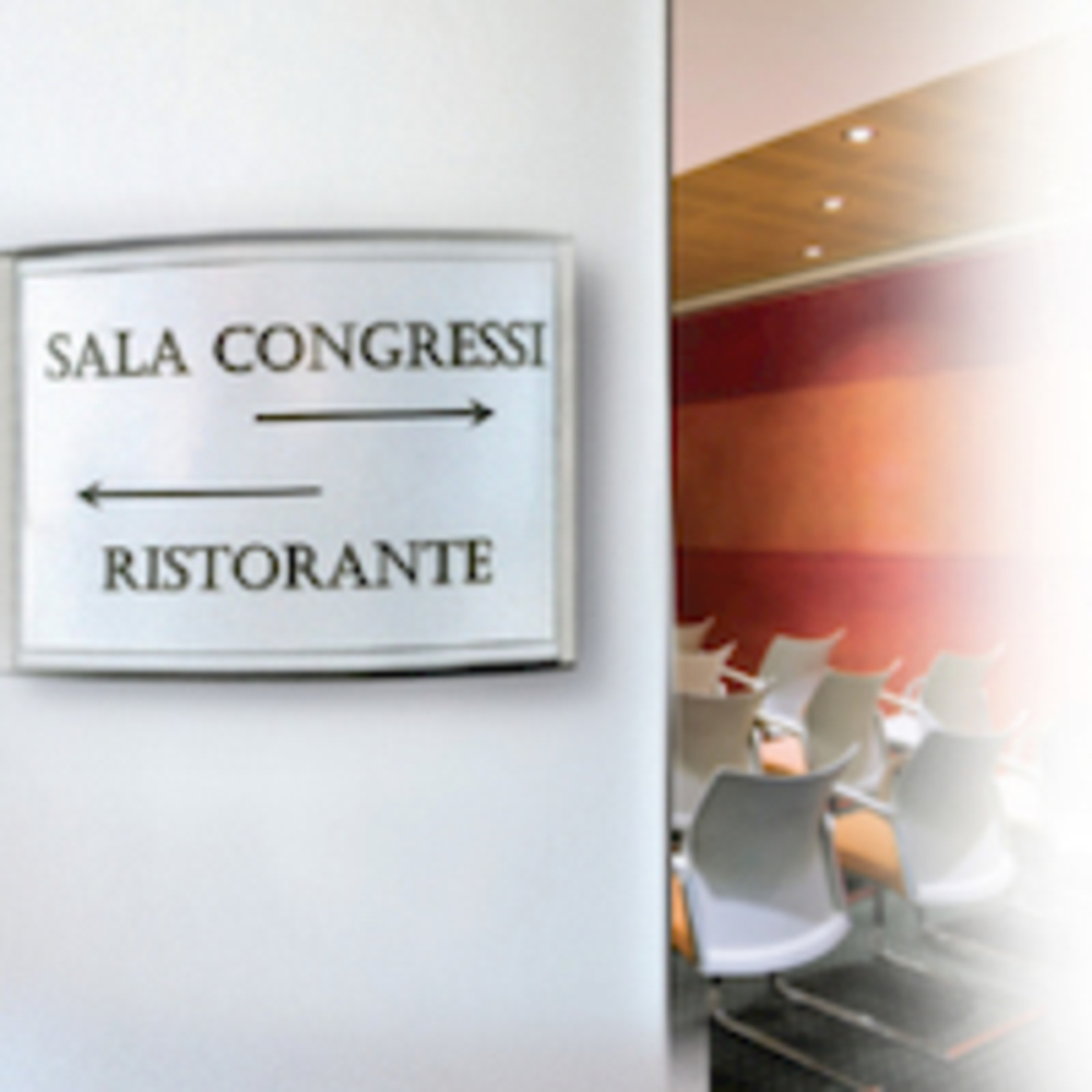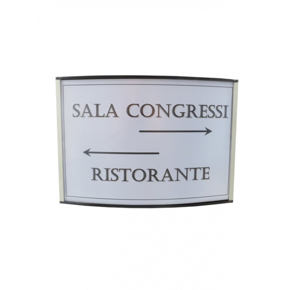 Targa convessa realizzata con profili in alluminio anodizzato. Fondo in forex bianco con foglio protezione pvc anti riflesso.
